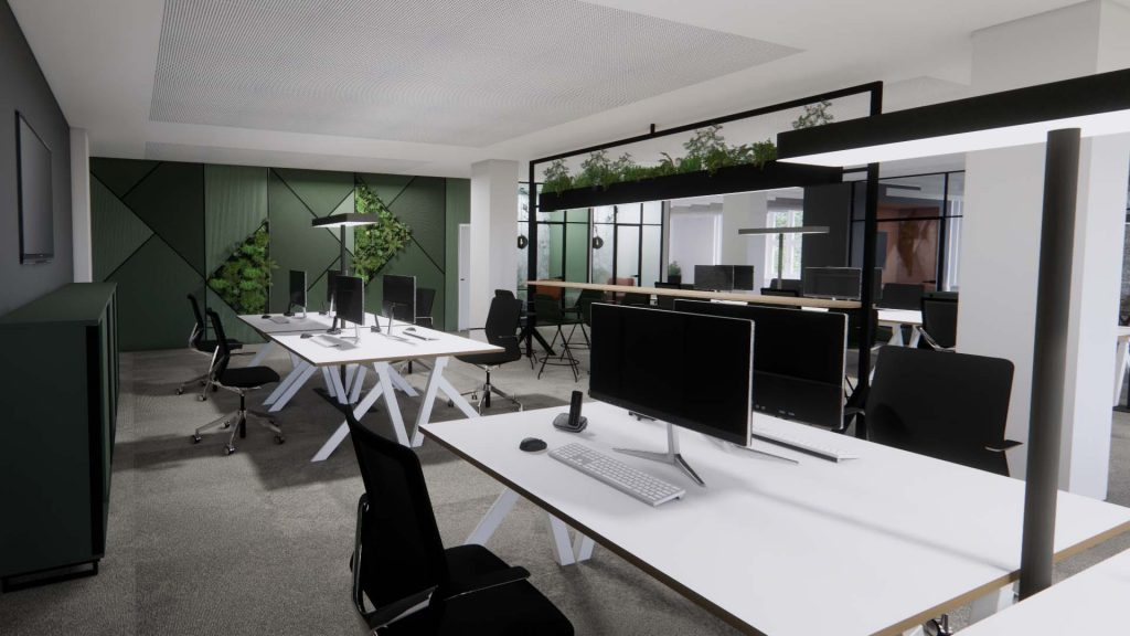 Wir brauchen offene Büroräume, die flexibel genutzt werden können. So genannte Open Space Arbeitsbereiche oder Coworking Flächen in denen folgende Bereiche vorhanden sein sollten: